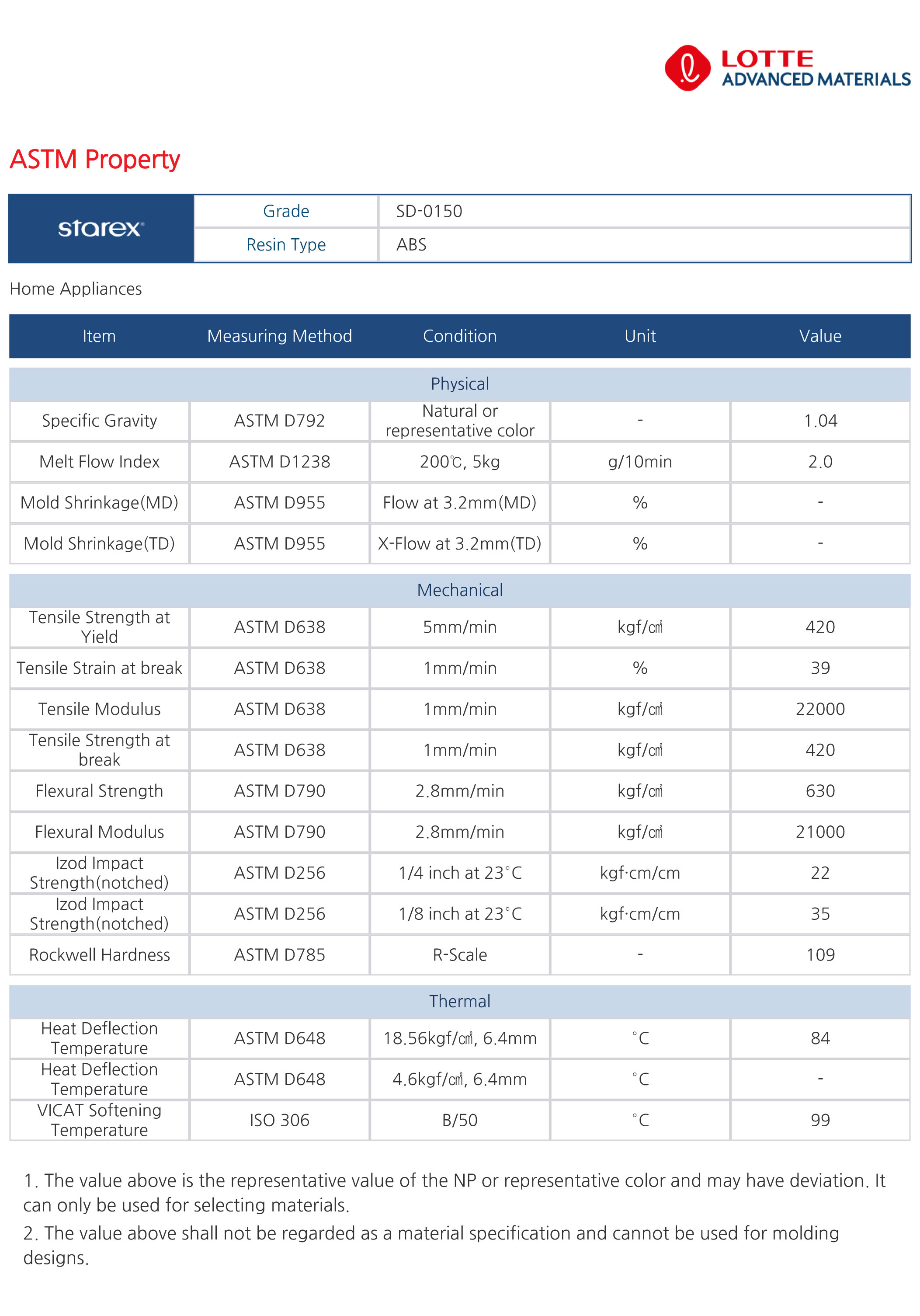 starex® is the Styrene product brand of LOTTE Advanced Materials, representing the company’s efforts to put together customer-centered technologies and know-how. starex covers the Styrene product groups such as ABS, ASA, EPS, SAN, while offering high-functionality choices through various lineups.